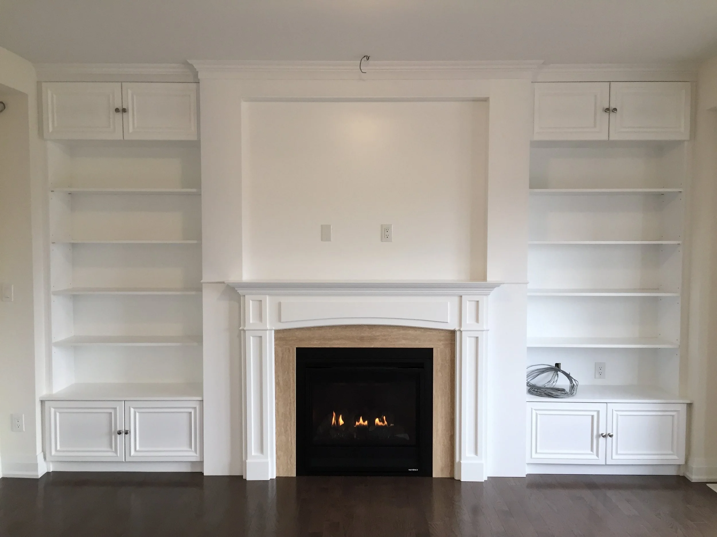 Custom Mantel, Overmantel and Wall-to-wall Cabinetry.