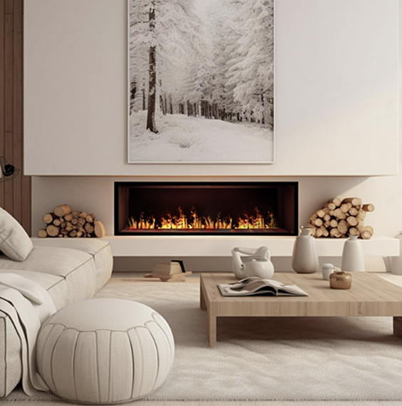 Patented Optimyst® technology produces lifelike water vapor flames featuring customizable flame colors and authentic crackling sounds. This realistic flame technology can be admired from any angle - whether in a see-through feature wall, three-sided design, or open-concept layout.